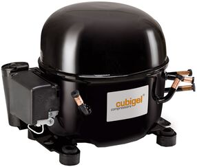 The range of hermetic reciprocating Cubigel compressors are designed for commercial refrigeration applications operating in difficult conditions, such as: large chest freezers, ice makers, ice cream freezers and store islands. Compressors with cylinder displacement from 18.4 to 23.2 cm³, intended for work with R134a, R404A, R290 refrigerants.