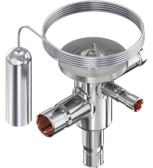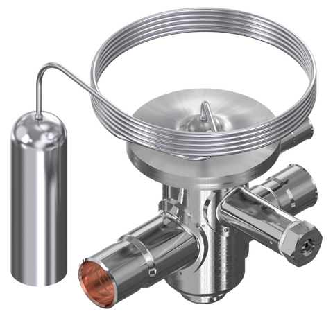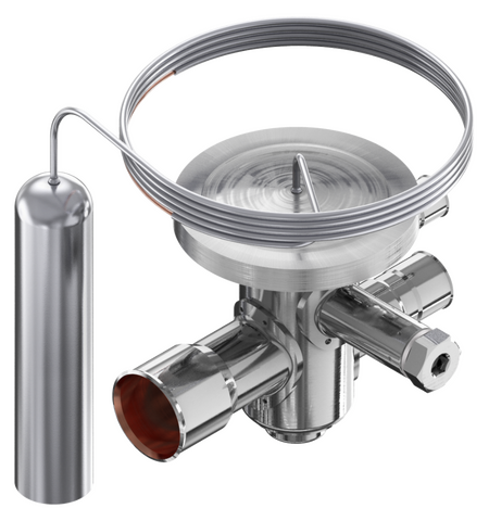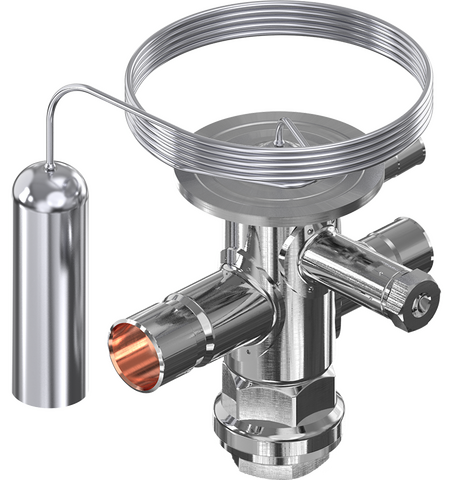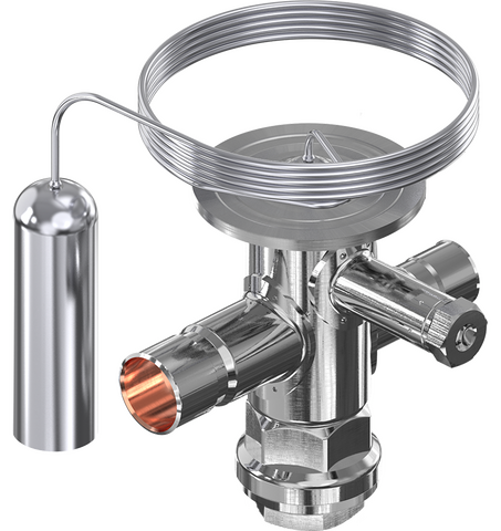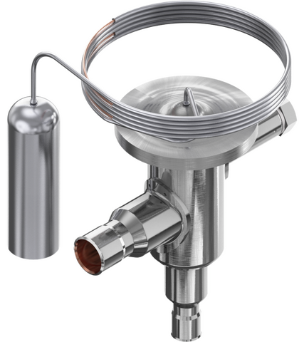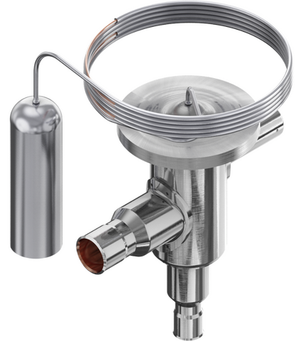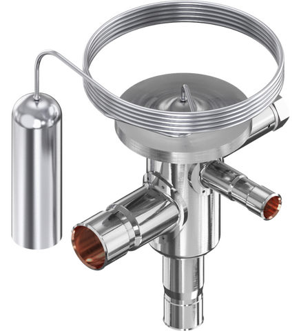 [read more]The Danfoss TU/TC series of thermostatic expansion valves made from stainless steel are designed to regulate the injection of refrigerant into evaporators in refrigeration and air conditioning systems. These valves are compatible with various refrigerants such as R134a, R290, R404A, R407A, R407C, R407F, R410A, R448A, R449A, R452A, R454C, R455A, R507, R513A, R1234yf, R1234ze, and R22 (depending on the model). They are available in angleway and straightway versions with both internal and external pressure equalization. These valves are known for their compact and lightweight design and are equipped with copper connectors made of stainless steel and copper, which enable quick soldering.