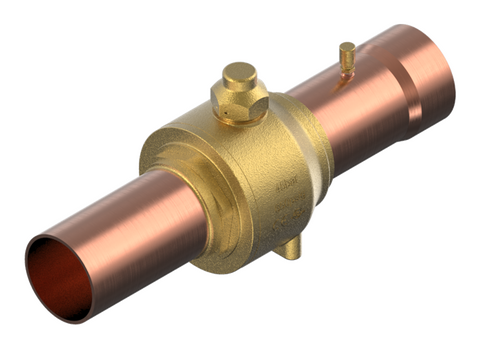 Danfoss GBC ball valves are bi-directional shut-off valves with manual control for two-way refrigerant flow. They are intended to use in liquid, suction and hot gas lines in refrigeration, freezing and air conditioning systems. Shut-off ball valves can be equipped with an additional measuring fitting. The valves have one-piece wire seal cap to prevent unintentional cap removal or tampering between services.
