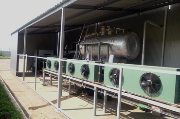 - Mushroom freezing: refrigeration supply for the IQF tunnel - refrigerating station based on 5 Bitzer HSN 8591 - 160 compressors. Refrigeration capacity: Q= 354 kW at Te= -45 ºС, Tc = 45 ºС, R507.