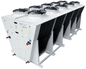 Типоряд промислових драй-кулерів ECO Modine VCE-W з вертикальним потоком повітря призначений для використання в широкому спектрі холодильних, кондиціонерних та процесних установок. Серія, доступна з номінальною потужністю від 53,40 кВт до 808,00 кВт, оснащена двополюсними осьовими вентиляторами AC діаметром 800 та 910 мм. Теплообмінник у вигляді літери "V" забезпечує оптимальні розміри пристрою, значно спрощуючи обслуговування та зменшуючи площу монтажу. Крок ламелей для всього типоряду становить 2,1 мм. Драй-кулери VCE-W можуть працювати в діапазоні температур від -25 °C до +60 °C з вентиляторами EC (опція). На замовлення моделі можуть бути оснащені нестандартними ламельними блоками та двигунами вентиляторів.