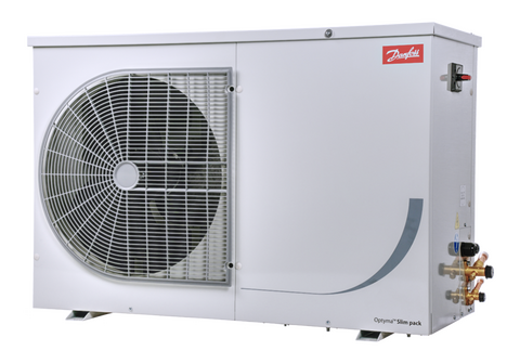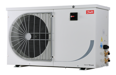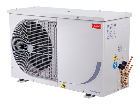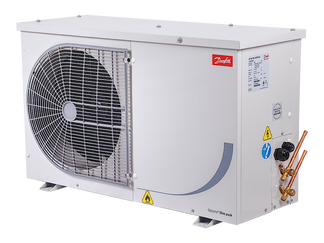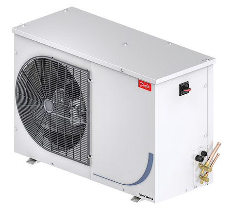 Серія одновентиляторних холодильних агрегатів Danfoss у корпусі, оснащених спіральними або поршневими компресорами та мікроканальним конденсатором. Агрегати розроблені для застосування у холодильних установах на середньотемпературному та високотемпературному режимі, адаптовані для роботи з багатьма холодоагентами A1: R448A, R449A, R452A, R134a, R407A, R407F, R513A, R404A та холодоагенти A2L: R454C, R455A з низьким GWP. Агрегати характеризуються компактними розмірами, тихою роботою та оптимізацією для роботи при високих температурах навколишнього середовища. З діапазоном потужності від 0,5 кВт до 10,3 кВт при середніх температурах і від 0,4 кВт до 3,6 кВт при низьких температурах агрегати ідеально підходять для холодильних камер, ферментацій і холодильних камер у всіх типах продуктових магазинів і ресторанів.