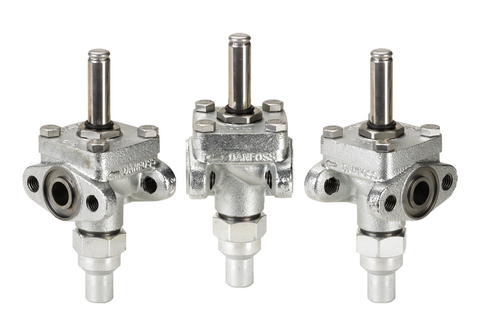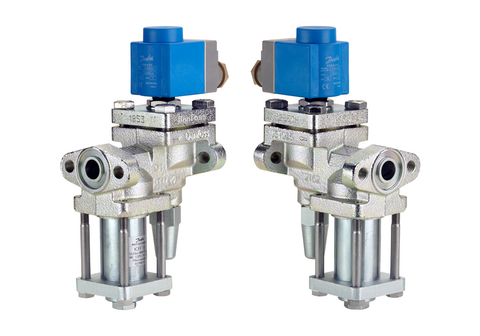 Ряд електромагнітних клапанів EVRAT Danfoss із сервоприводом для використання в лініях рідини, всмоктування та гарячого газу. Електромагнітні клапани адаптовані для роботи з фторвмісними холодоагентами та аміаком. Вони підходять для використання в усіх установках, де необхідний перепад тиску відкриття 0 бар. Усі клапани EVRAT оснащені шпинделем ручного відкриття. Вони постачаються як частина програми запчастин з окремим корпусом клапана, фланцями та соленоїдом.