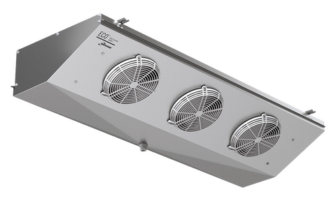 Серія комерційних стельових повітроохолоджувачів ECO Modine GME з односторонньою подачею повітря для застосування в невеликих камерах малої висоти для зберігання свіжих або заморожених продуктів. 18 моделей номінальною потужністю від 0,69 кВт до 3,97 кВт, оснащені осьовими вентиляторами AC діаметром 250 мм, ступінь захисту IP44.