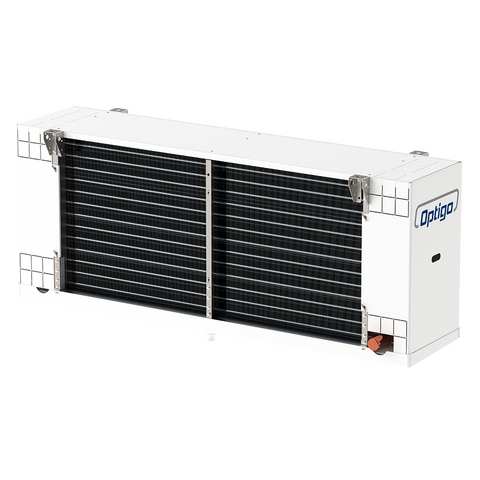 Серія кубічних повітроохолоджувачів Optigo ECEH Alfa LU-VE з односторонньою подачею повітря, призначених для застосування в холодильних та морозильних камерах, забезпечуючи надійне та ефективне охолодження в умовах промислового застосування. Повітроохолоджувачі серії ECEH призначені для роботи з холодоагентами групи HFC. Модельний ряд охоплює номінальну холодопродуктивність від 11,5 до 53,7 кВт (SC2), що дозволяє підібрати обладнання під конкретні технічні задачі. Ідеально підходять для промислового застосування. Кубічні повітроохолоджувачі оснащені ламелями 7 мм, вентиляторами AC діаметром 450 мм та 500 мм.