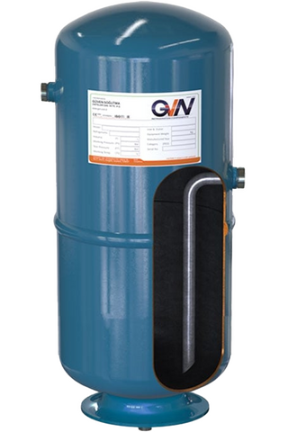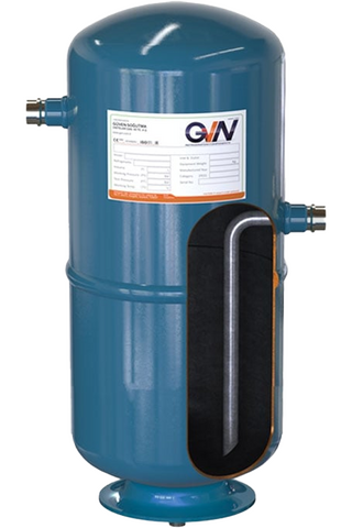 Серія вертикальних ресиверів фреону GVN VLR. Моделі доступні в різних розмірах та діаметрах з'єднань, що дозволяє індивідуально підібрати їх для будь-якого застосування. Ці ресивери призначені для роботи з компресорно-конденсаторними агрегатами, що використовують холодоагенти груп HCFC, HFC, а також R290 (пропан) і R717* (аміак). Виготовлені відповідно до Директиви CE 2014/68/ЄС [PED] та схвалені для роботи з максимальним робочим тиском до 33 бар (залежно від моделі). Вони доступні в об'ємах, від 1 літра до 21 літра. Конструкція цих була розроблена для забезпечення високої довговічності, безпечної та надійної експлуатації в широкому діапазоні застосувань.