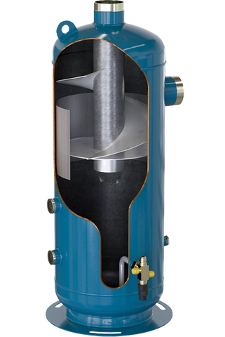 Серія спіральних масловідділювачів GVN OS.HR, додатково оснащених ресивером мастила, розроблена для ефективного відділення масла в холодильних системах та системах кондиціонування повітря. Ці сепаратори доступні з паяними з'єднаннями ODS від 7/8 дюйма до 3 1/8 дюйма. Об'єм від 12,2 до 52 літрів. Вони підходять для використання з холодоагентами HCFC та HFC, а також R410A та природними холодоагентами, такими як R290 (пропан) та R717* (аміак). Адаптовані для роботи в системах із максимальним робочим тиском 33 та 45 бар. Спіральні масловіддільники призначені для використання зі спіральними та поршневими компресорами та не рекомендуються для гвинтових компресорів. Виготовлено відповідно до Директиви 2014/68/ЄС щодо обладнання, що працює під тиском (PED).